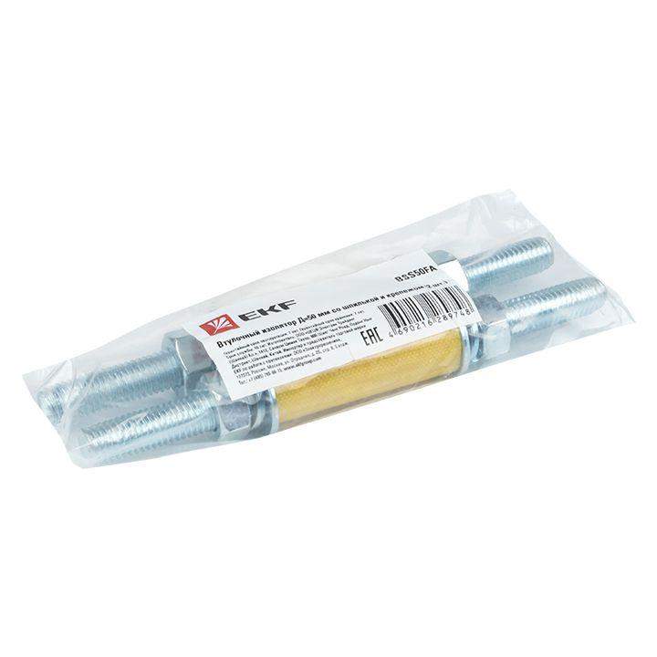 Комплект втулочных изоляторов Д=110 мм (2 шт) EKF PROxima в комплекте со шпильками, гайками и шайбами. Комплект предназначен для сборки, установки и фиксации держателей плоских шин.