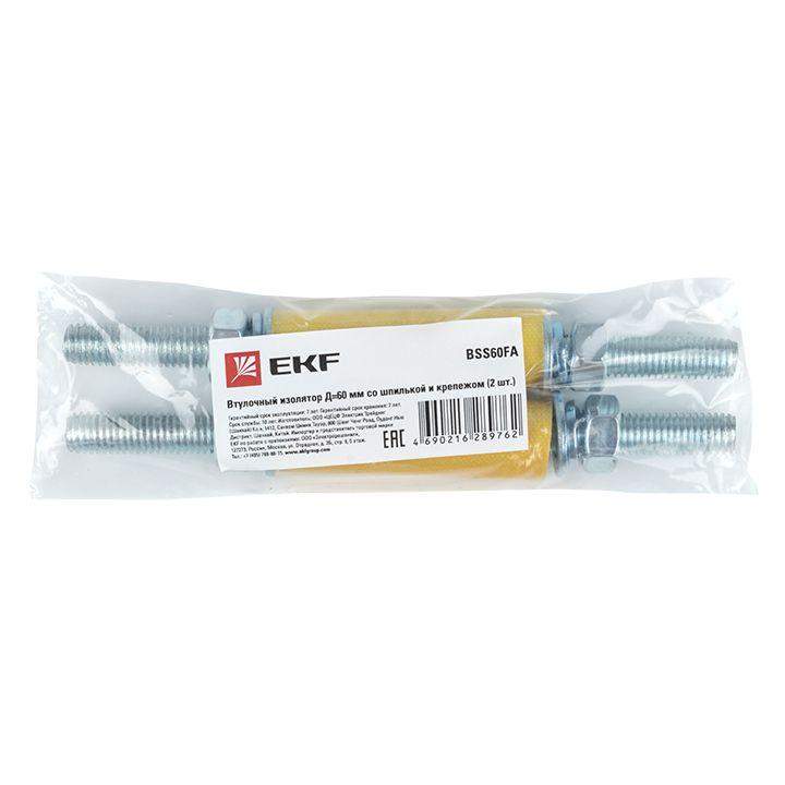 Изолятор втулочный Д=60мм со шпилькой и крепежом (уп.2шт) PROxima EKF BSS60FA фото в каталоге от BTSprom.by