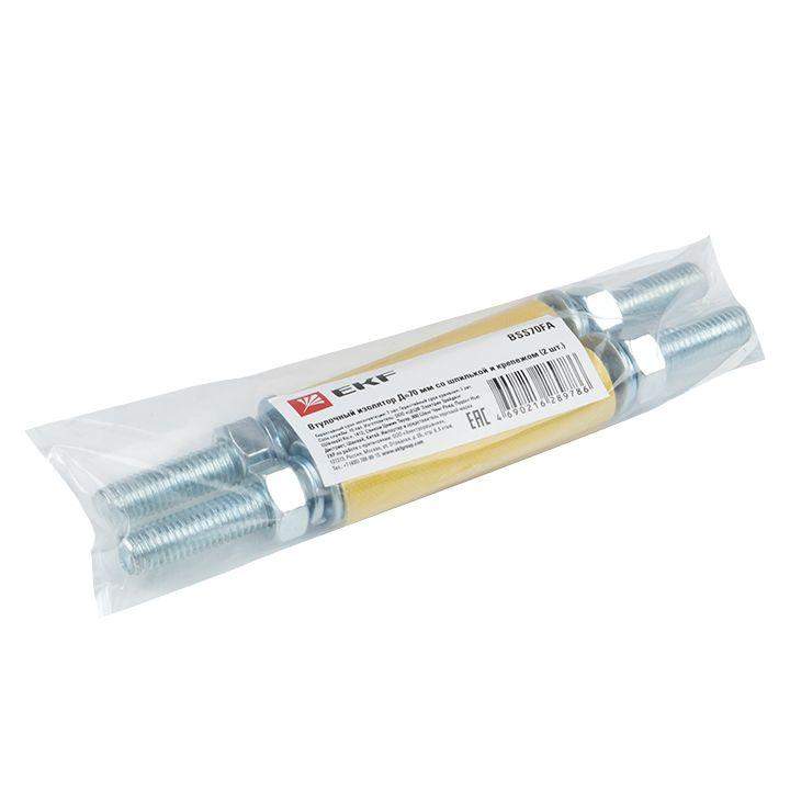 Изолятор втулочный Д=70мм со шпилькой и крепежом (уп.2шт) PROxima EKF BSS70FA фото в каталоге от BTSprom.by