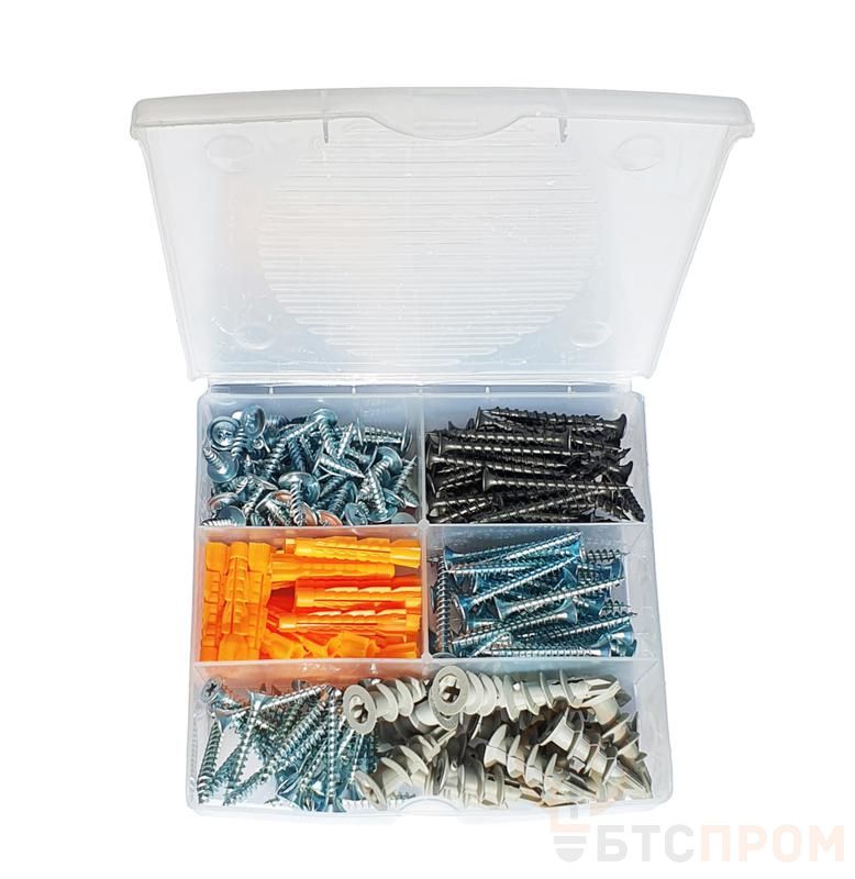 В состав комплекта входят: саморезы универсальные оцинкованные 4,5х35 мм (20 шт.), саморезы универсальные оцинкованные 4,5х40 мм (40 шт.), саморезы металл-металл 4,2х16 мм (80 шт.), саморезы гипсокартон-дерево 3,5х45 мм (50 шт.), нейлоновые дюбели со сверлом для гипсокартона DRIVA PA 14,0х32 мм (20 шт.) и дюбели распорные ZUM из полипропилена 6,0х37 мм (35 шт.)