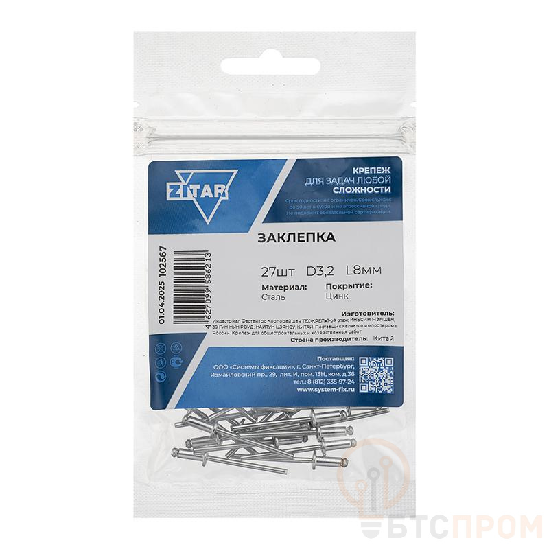 Область применения: заклепка ZK предназначена для создания неразъемных соединений различных материалов и частей конструкции, в том числе таких, доступ к которым открыт с одной стороны. Может применяться при производстве и монтаже навесных фасадных систем, кровельных систем, воздуховодов, дымоходов, вентиляционных систем, иных тонкостенных конструкций из профлиста и металлочерепицы. Конструкция: состоит из гильзы в виде трубки из алюминиевой заготовки и стержня из стальной проволоки с антикоррозионным цинковым покрытием. Материал: алюминий, сталь. Особенности: для установки применяют специальный ручной, аккумуляторный или пневмогидравлический инструмент – заклепочник. В случае неправильной установки заклепки возможен ее демонтаж. Для этого сверлом того же диаметра, которым производилось сверление отверстия, производится высверливание заклепки и удаление ее остатков из отверстия.