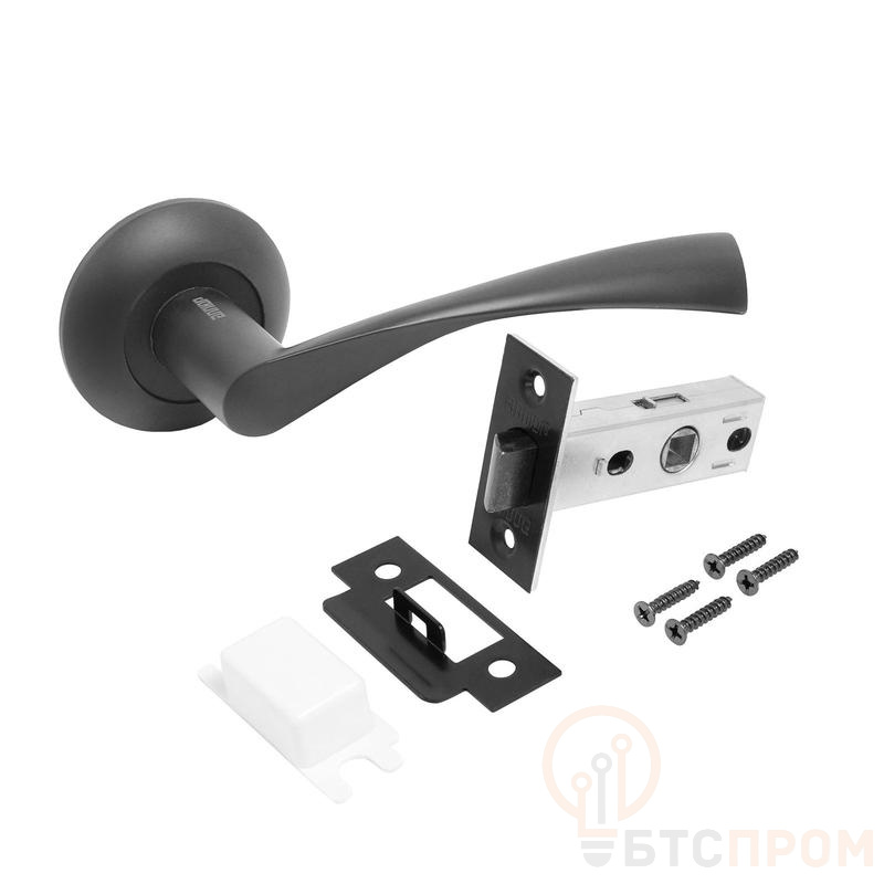 АЛЛЮР АРТ "ОСКАР" BL+L45-8 BL (13150/S45) матовый черный Комплект ручка и защелка (20), , Комплект: ручка на круглой накладке и защелка без фиксации.Материал ручек — алюминиевый сплав, защелки - сталь. Многослойное гальваническое покрытие. Комплектуются винтовыми стяжками и шурупами. Длина разрезного квадрата - 95мм. Для деревянных дверей, толщиной 35-40 мм. Гарантийный срок эксплуатации — 3 года.