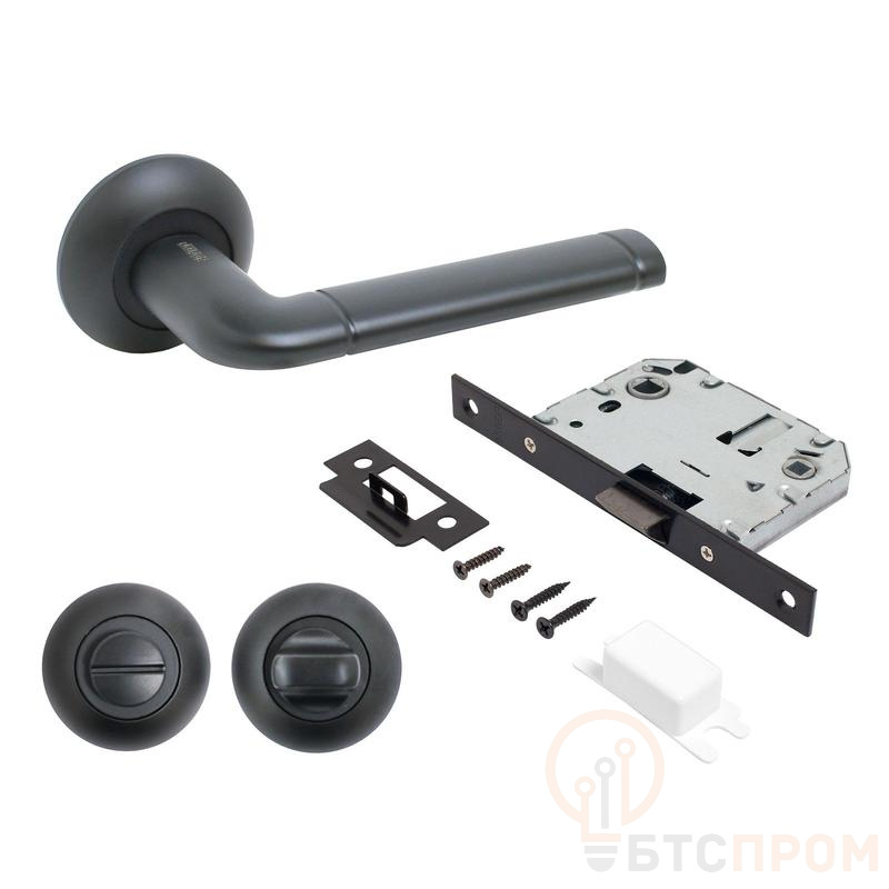 АЛЛЮР АРТ "ПОЛО" BL+L7050S BL+BK-R1 BL(15150/S7050) матовый черный Компл ручка и защелка с фикс (20), , Комплект: ручка на круглой накладке, сантехническая завертка и защелка с фиксацией .Материал ручек и завертки — алюминиевый сплав, защелки - сталь. Многослойное гальваническое покрытие. Комплектуются винтовыми стяжками и шурупами. Длина разрезного квадрата - 95мм. Для деревянных дверей, толщиной 35-40 мм. Гарантийный срок эксплуатации — 3 года.