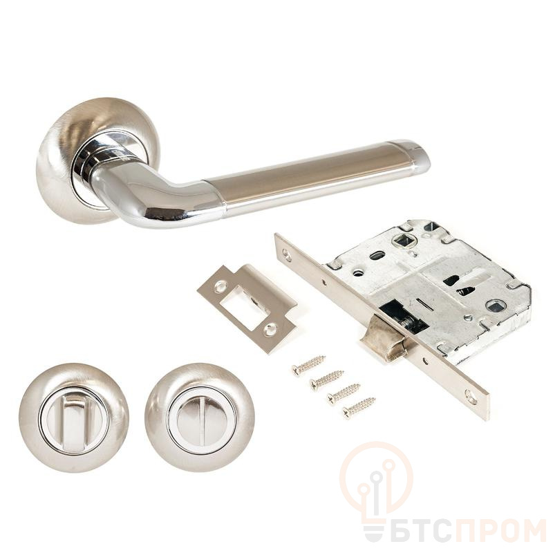 АЛЛЮР АРТ "ПОЛО" SN/CP+L7050S SN+BK-R1 SN (1582/S7050) мат.никель/хром Компл ручка и защ с фикс (20), , Комплект: ручка на круглой накладке, сантехническая завертка и защелка с фиксацией .Материал ручек и завертки — алюминиевый сплав, защелки - сталь. Многослойное гальваническое покрытие. Комплектуются винтовыми стяжками и шурупами. Длина разрезного квадрата - 95мм. Для деревянных дверей, толщиной 35-40 мм. Гарантийный срок эксплуатации — 3 года.