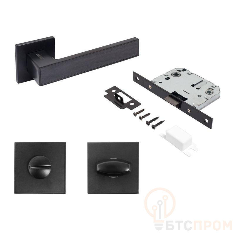 Комплект: ручка на квадратной накладке, сантехническая завертка и защелка с фиксацией .Материал ручек и завертки — алюминиевый сплав, защелки - сталь. Многослойное гальваническое покрытие. Комплектуются винтовыми стяжками и шурупами. Длина разрезного квадрата - 95мм. Для деревянных дверей, толщиной 35-40 мм. Гарантийный срок эксплуатации — 3 года.