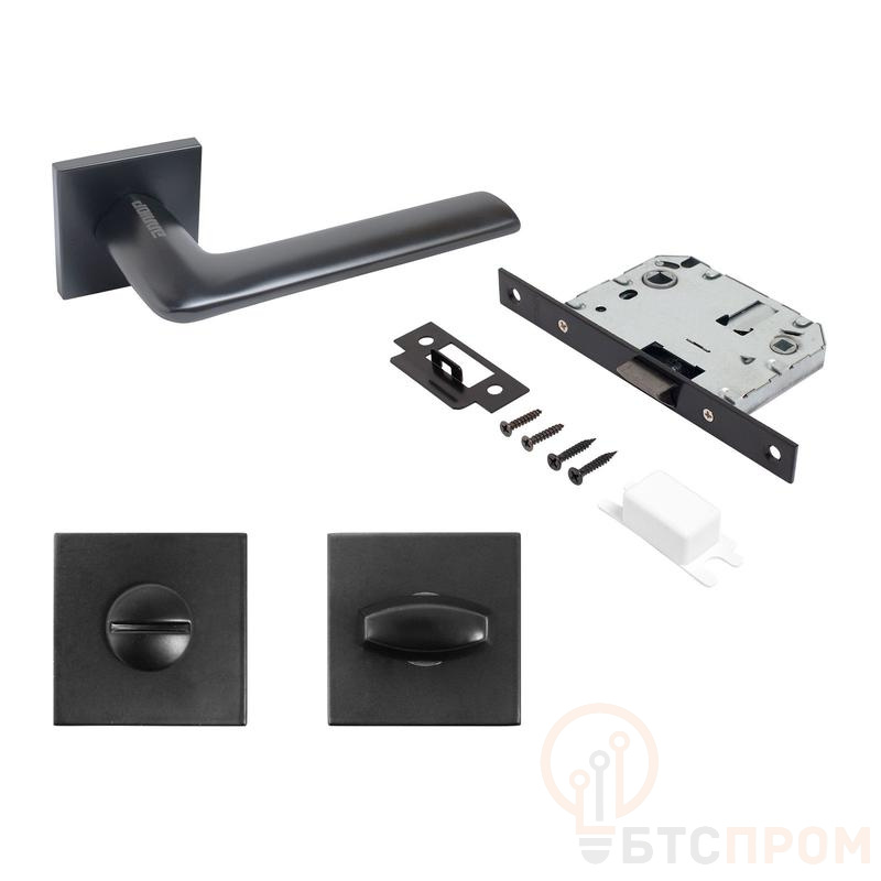 АЛЛЮР АРТ "ТИНА" BL+L7050S BL+BK-S2 BL (88150/S7050) матовый черный Комплект ручка и защ с фикс (20), , Комплект: ручка на квадратной накладке, сантехническая завертка и защелка с фиксацией .Материал ручек и завертки — алюминиевый сплав, защелки - сталь. Многослойное гальваническое покрытие. Комплектуются винтовыми стяжками и шурупами. Длина разрезного квадрата - 95мм. Для деревянных дверей, толщиной 35-40 мм. Гарантийный срок эксплуатации — 3 года.