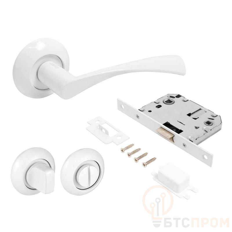 Комплект ручка и защелка с фикс. АРТ "ОСКАР" W+L7050S W+BK-R1 W (13110/S7050) матов. бел. Аллюр 14 672