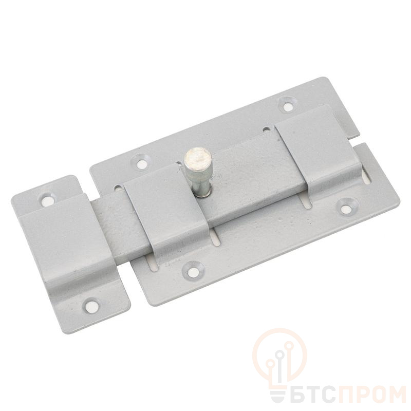 Засов накладной для деревянных и металлических дверей. Материал - сталь, полимерное покрытие. Габариты корпуса - 115х75 мм, 4 крепежных отверстия. Плоский ригель 7х29 мм с вылетом 25 мм. В комплекте ответная планка.