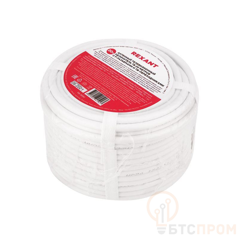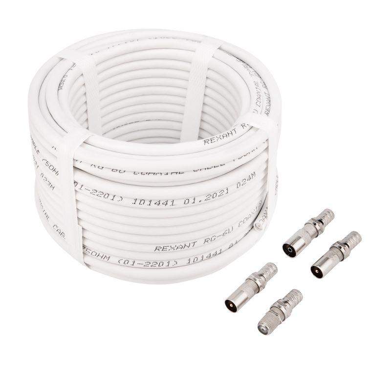 Комплект для ТВ оборудования антенный телевизионный удлинитель ТВ 20м с F-разъемами и ТВ-переходниками Rexant 06-3092