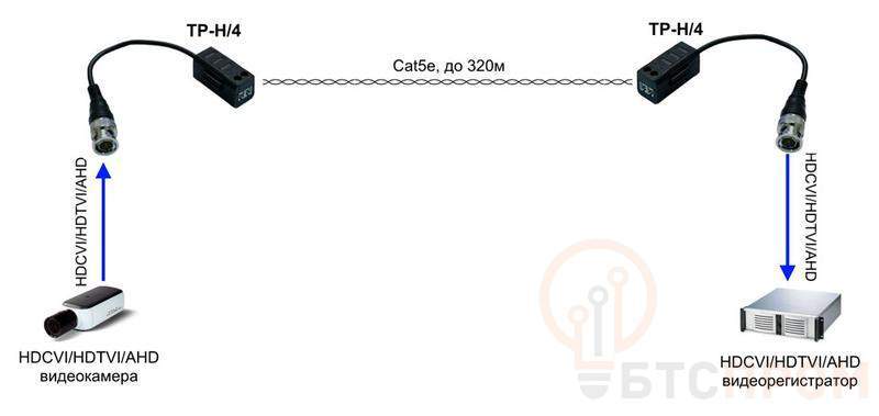 Комплект из двух пассивных приемопередатчиков HDCVI/HDTVI/AHD/CVBS по витой паре UTP кат.5E/6 до 320м(AHD/720р)/250м(AHD/1080р) до 130м(AHD/5Mpix) TP-H/4 OSNOVO 1000641295
