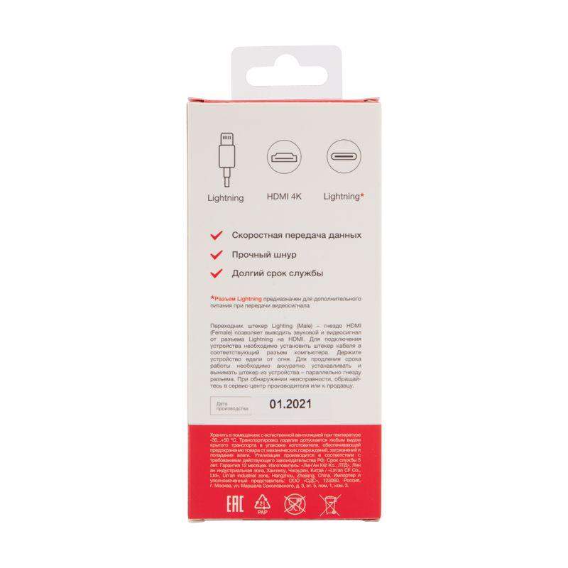 Переходник штекер Lightning (Male) - гнездо HDMI (Female) REXANT позволяет выводить звуковой и видеосигнал от разъема Lightning на HDMI. Благодаря высокому качеству материалов и производства, переходник REXANT прослужит гораздо дольше, чем обычный.
