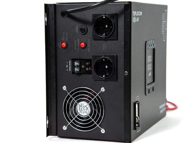 220 В, 1500 ВА (1050 Вт), ИБП для котла. Чистый синус. Защита от КЗ и перегрузки. Опциональная возможность подключения солнечных панелей мощностью до 1050 Вт. Ток заряда от солнечных панелей — до 40 А, в сетевом режиме — до 15 А. Несколько режимов работы: параллельно с сетью, автономно, параллельно с сетью в режиме резервного источника питания. Режим работы выбирается пользователем. Идеально сбалансированное решение для котельной. Работает от двух АКБ 12В (можно автомобильных), защита АКБ от глубокого разряда и перезаряда, минимальная требуемая ёмкость — 40 А/ч. Защита от КЗ и перегрузки. Можно использовать без солнечных панелей в качестве ИБП.