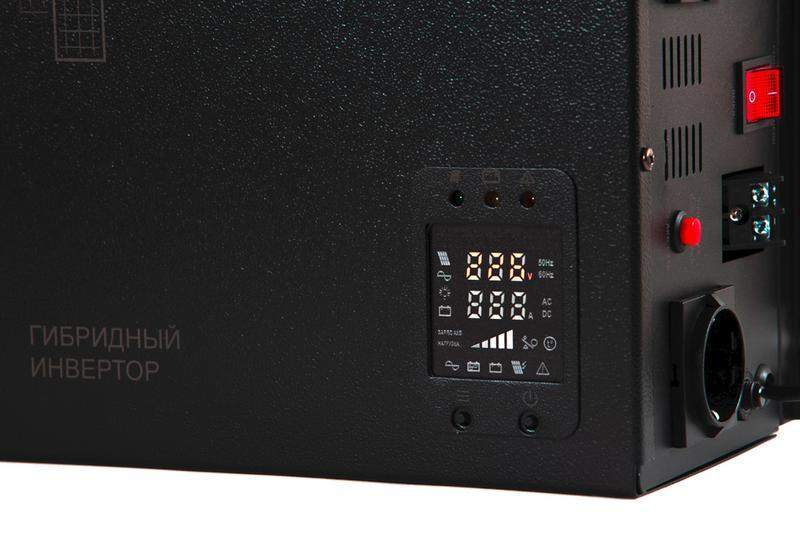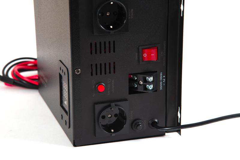 220 В, 800 ВА (500 Вт), ИБП для котла. Чистый синус. Защита от КЗ и перегрузки. Опциональная возможность подключения солнечных панелей мощностью до 500 Вт. Ток заряда от солнечных панелей — до 20 А, в сетевом режиме — до 10 А. Несколько режимов работы: параллельно с сетью, автономно, параллельно с сетью в режиме резервного источника питания. Режим работы выбирается пользователем. Идеально сбалансированное решение для котельной. Работает от одной АКБ 12В (можно автомобильной), защита АКБ от глубокого разряда и перезаряда, минимальная требуемая ёмкость — 40 А/ч. Защита от КЗ и перегрузки. Можно использовать без солнечных панелей в качестве ИБП.