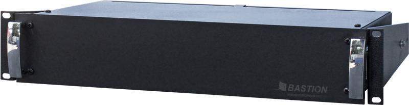 Аккумуляторный отсек под 2 АКБ 17 Ач для установки в 19" шкаф, высота — 2U. Выдвижные телескопические кронштейны, фронтальные ручки.
