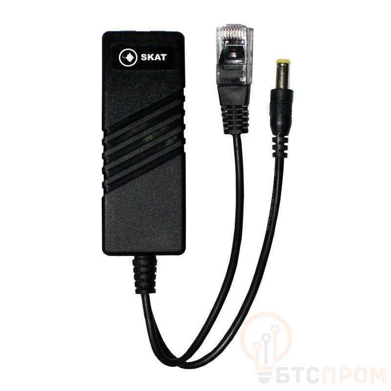 Одноканальный сплиттер. Позволяет подключать IP-видеокамеры без поддержки PoE к коммутаторам с PoE. Сплиттер разделяет сигнал с витой пары RJ-45 (данные+питание) на отдельный канал данных RJ-45 и отдельный канал питания 12 В. Скорость соединения 10/100 Mbps. Диапазон входного напряжения 37...57 В, выходная мощность — 13 Вт. Поддержка Auto-MDI/MDI-X. Защита от перегрева, перенапряжения, защита от короткого замыкания и перегрузки.