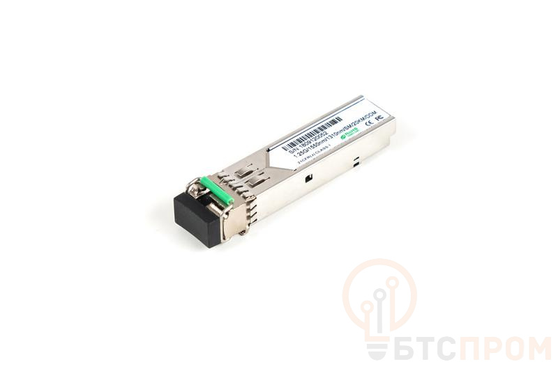 Оптический трансивер, SFP-модуль. Скорость передачи данных — 1,25 Гбит/с, тип кабеля — одномодовый 9/125 мкм, тип модуля — одноволоконный, разъём — LC, максимальная дальность работы — 20 км, длина волны Tx — 1550 нм, длина волны Rx — 1310 нм, мощность излучения — -9…-3 дБм, чувствительность — -25 дБм, горячая замена, цифровой контроль параметров DDM, диапазон рабочих температур — 0…+70 °C. Гарантия — 36 месяцев.