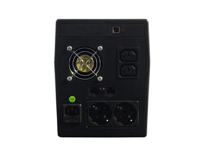 220 В, 1500 ВА (900 Вт), встроенные АКБ 9 Ач, 2 шт, время резерва 2 мин., холодный старт, модифицированный синус, световая и звуковая индикация режимов работы, графический дисплей режимов работы, связь и управление c ПК по USB. Встроенный стабилизатор (диапазон сети — 170...270 В), защита от всплесков напряжения, защита от перегрузки. 4 выходных разъёма: 2 шт. IEC 320 C13 (компьютерный) и 2 шт. CEE 7/4 (розетка с заземлением).