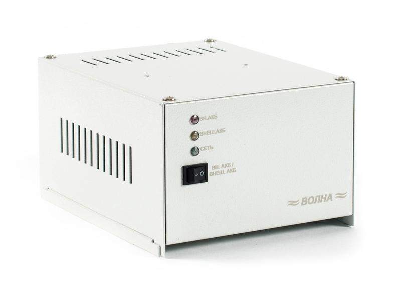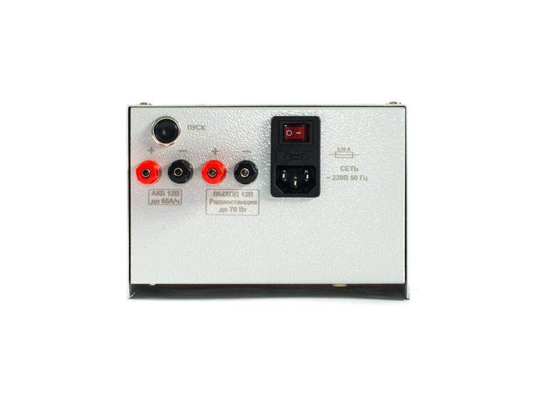 ИБП для стационарных радиостанций 13,8 В, ток — до 19 А, при соотношении передача/приём 1:4, корпус под АКБ — 12 Ач, возможность подключения внешнего АКБ — до 65 Ач. Возможность работы как со встроенным, так и с внешним аккумулятором. Автоматическая подзарядка и защита аккумулятора от глубокого разряда. Кнопка «Пуск» для передачи экстренных сообщений при отсутствии сети и разряженном аккумуляторе.