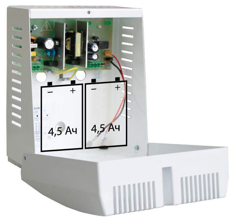 24 В, 1,5 А, металлопластиковый корпус под 2 АКБ 4, 5 Ач, защита АКБ, защита выхода от КЗ и перегрузки