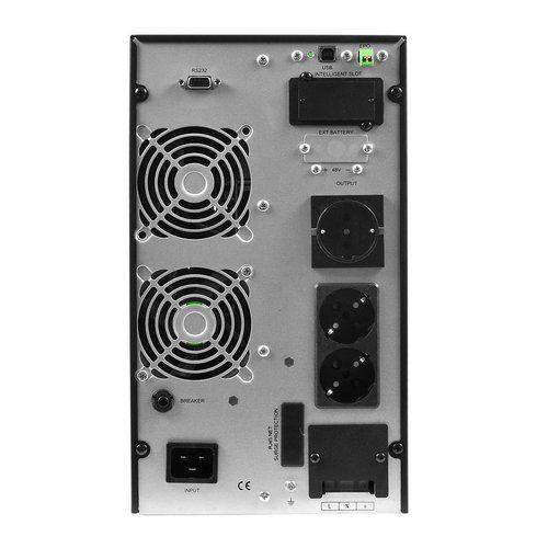 Источник бесперебойного питания Online 2000 LCD двойного преобразования 2000В.А 1800Вт 2 евророзетки с резервным питанием USB RS232 слот SNMP разъем EPO внешний блок батарей (в комплект не входит) POWERMAN 1000425500