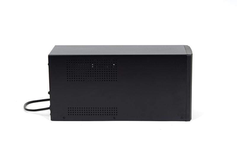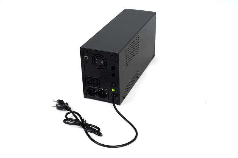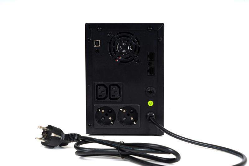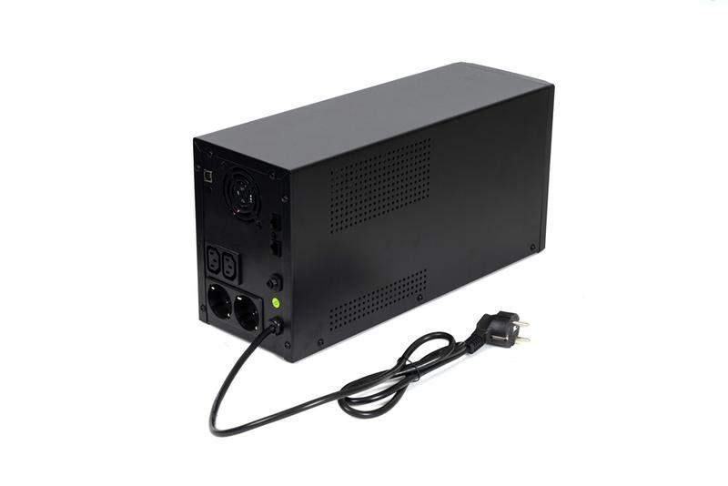 220 В, 3000 ВА, (1800 Вт), встроенный АКБ 9 Ач, 4 шт, время резерва 2 мин., холодный старт, модифицированый синус, световая и звуковая индикация режимов работы, графический дисплей режимов работы связь и управление ПК по USB. Встроенный стабилизатор (диапазон сети — 162...290 В), защита от всплесков напряжения, защита от перегрузки. 4 выходных разъёма: 2 шт. IEC 320 C13 (компьютерный), 2 шт. CEE 7/4 (розетка с заземлением).