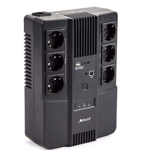 Источник бесперебойного питания SKAT-UPS 800 AI 220В 480Вт 1 АКБ 9А.ч внутр. меандр. стабилизац. напряж. 6 выход. Бастион 452