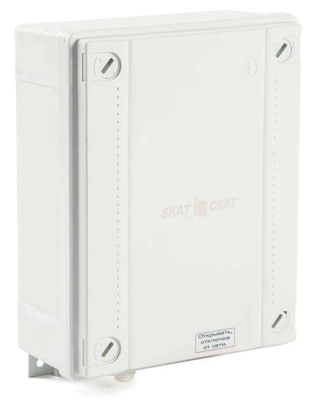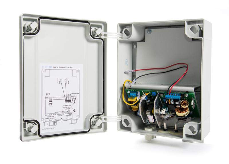 12 В, 2 А. Регулируемый выход 5–9 В, 25 ВА (ступенчатая и плавная регулировка), регулируемый ток заряда АКБ, подогрев АКБ (термостат АКБ не нужен), уличное исполнение, корпус класса защиты IP56, рабочий температурный диапазон — от -40 °C до +50 °C, диапазон входного напряжения — 170–250 В. Корпус под АКБ 7 Ач.