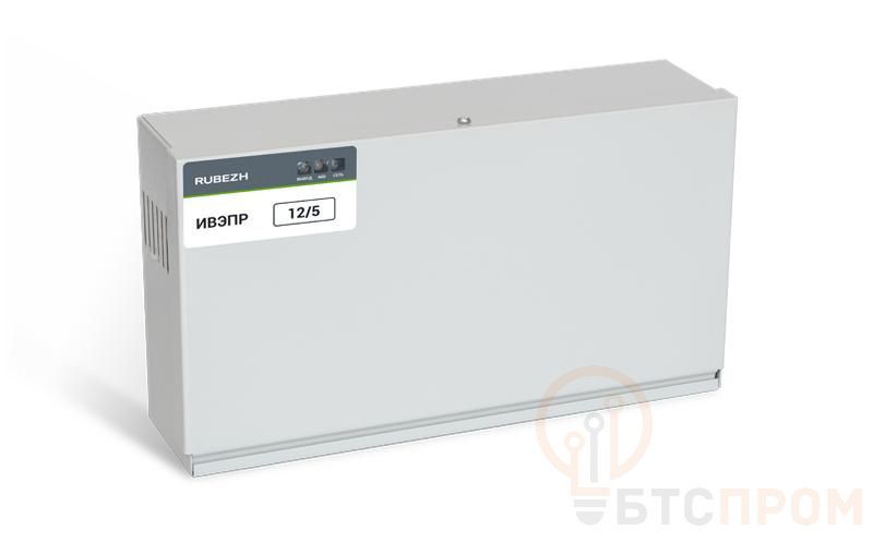Источник питания ИВЭПР 12/5 имеет несколько исполнений корпусов для установки одной или двух АКБ ёмкостью от 7 Ач до 40 Ач. Во всех исполнения предусмотрена техническая возможность подключения боксов резервного электропитания БР 12 для увеличения времени непрерывной работы от АКБ. Преимущества В состав схемы ИВЭПР 12/5 входит электронный ключ, позволяющий постоянно тестировать наличие и состояние аккумуляторной батареи, а также управлять процессом её заряда. Зарядный ток находится в обратной зависимости от степени заряда АКБ. Таким образом, по мере заряда АКБ величина зарядного тока уменьшается и в конечном итоге остаётся на уровне компенсации саморазряда АКБ. Схема заряда, компенсируя саморазряд, поддерживает напряжение на АКБ на максимальном уровне, при этом полностью исключена ситуация перезаряда и разогрева АКБ. Каждая АКБ имеет свою цепь заряда, таким образом, уровень зарядного тока поддерживается для каждой АКБ индивидуально. Источник не производит заряд АКБ с напряжением ниже 10 В, поскольку глубоко разряженные АКБ являются, как правило, неисправными и непригодными к эксплуатации. Импульсная схема ИВЭПР обеспечивает высокий коэффициент полезного действия, что снижает затраты на электроэнергию при эксплуатации, а также сводит к минимуму тепловыделение источника, которое негативно сказывается на сроке службы аккумуляторной батареи. ИВЭПР отличается высокой надёжностью, расширенным диапазоном сетевого напряжения 130 В - 265 В, увеличенным температурным диапазоном от -25 °C до +50 °C и пониженным уровнем высокочастотных помех. ИВЭПР 12/5 обеспечивает: автоматический заряд АКБ при наличии сети переменного тока; автоматический переход на работу от АКБ при снижении сетевого напряжения ниже минимального рабочего значения и возврат на питание от сети при восстановлении сетевого напряжения; электронную защиту от переполюсовки при подключении АКБ и замыкания клемм присоединения АКБ. При работе от сети переполюсовка или замыкание клемм АКБ не влияет на выходное напряжение; защиту аккумуляторной батареи от глубокого разряда путём отключения нагрузки при снижении напряжения на АКБ ниже определённого значения. При отсутствии сетевого напряжения после подключения исправной, заряженной АКБ источник выходит на заданный режим выходного напряжения автоматически; электронную защиту источника от короткого замыкания и перегрузок по току. После устранения режима короткого замыкания или перегрузки источник автоматически восстанавливает выходное напряжение; защиту схемы источника от повреждений при скачках сетевого напряжения за счёт наличия металлоксидного варистора; защиту нагрузки от повышенного напряжения в случае неисправности схемы стабилизации источника; термозащиту от перегрева при работе на нагрузку, превышающую номинальную. В источнике предусмотрен сигнал «Авария» для передачи информации о наличии неисправности во внешние цепи. Информационный сигнал «АВАРИЯ» сделан в виде замыкающихся контактов электромеханического реле («сухой контакт»): при наличии сети 230 В, наличии исправной и заряженной АКБ, наличии выходного напряжения (нет КЗ) – контакты реле «1» и»3» замкнуты, «2» и «3» – разомкнуты; при отсутствии любого из вышеперечисленного – контакты реле «1» и «3» разомкнуты, «2» и «3» – замкнуты.