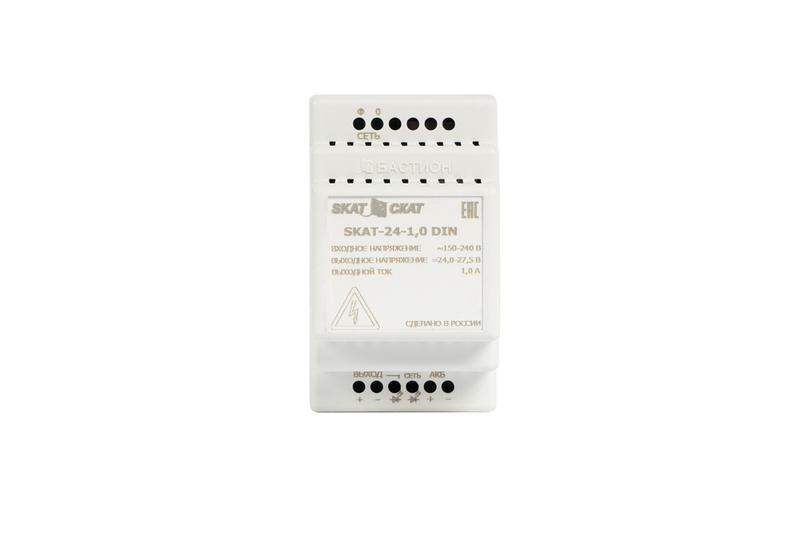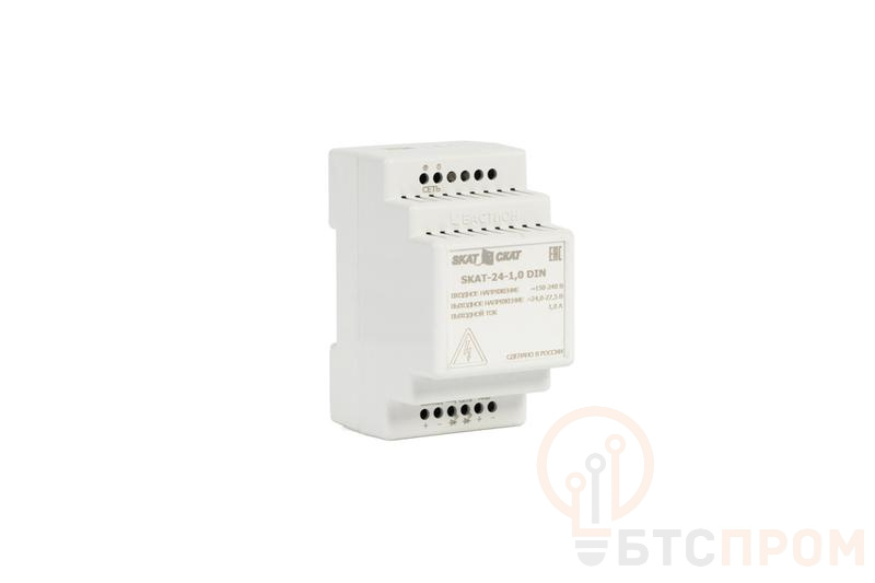 24В 1А пластиковый корпус под DIN рейку 35 мм Внешний АКБ от 4,5Ач. Защита от КЗ в нагрузке, защита АКБ от глубокого разряда и переполюсовки. Размер — 53х88х71 мм