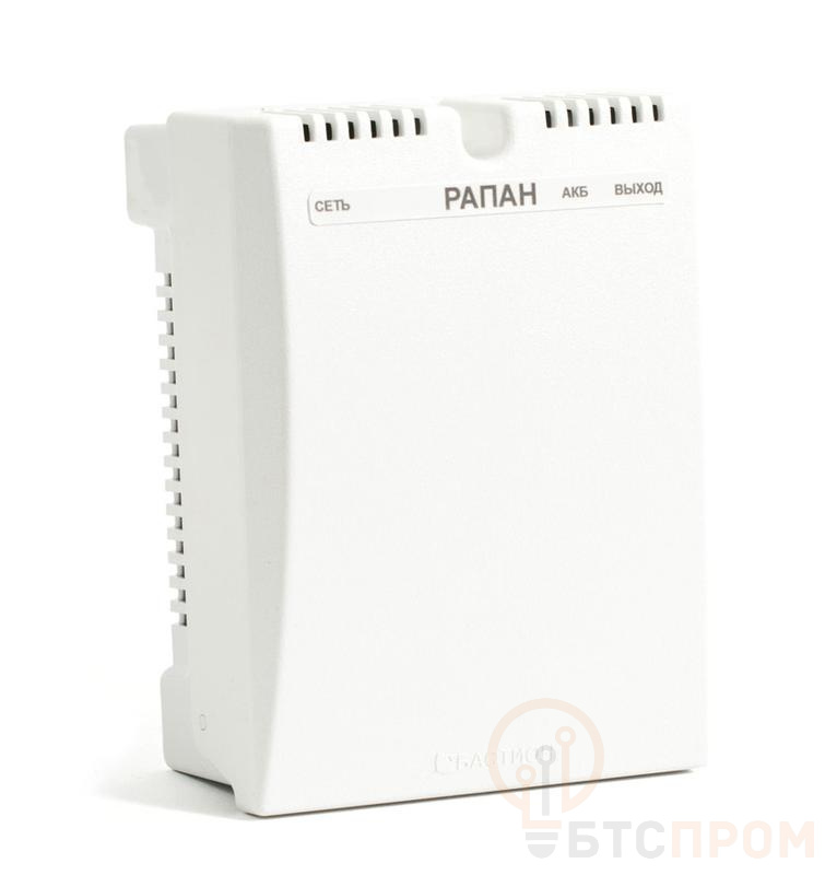 12 В, 1 А. Пластиковый корпус под АКБ 1,2 Ач, защита АКБ, защита выхода от КЗ и перегрузки.