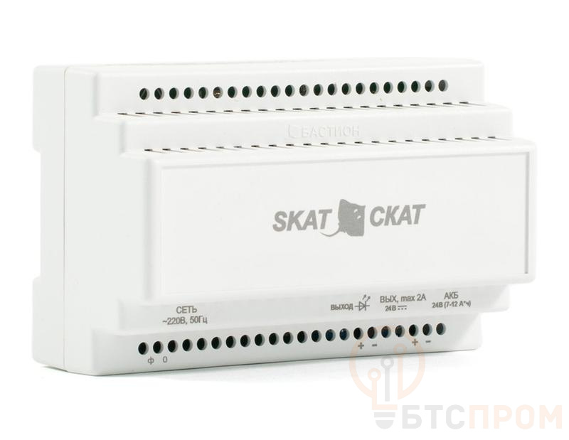 Источник вторичного электропитания резервированный SKAT-24-2.0-DIN 24В 2А пластик. корпус под DIN рейку 35мм без АКБ под 2 АКБ по 7А.ч Бастион 585