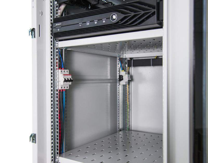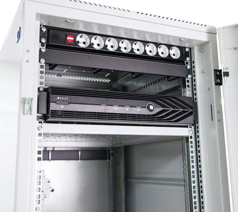 Комплекс бесперебойного питания 220 В / 10000 ВА, чистый синус, Online, диапазон входного напряжения — 120...276 В, 19" шкаф, место под 16 шт. АКБ 80 Ач (в комплект не входят). SNMP-модуль для мониторинга и управления ИБП по сети. Габариты (ШхГхВ) — 600х820х2130 мм, дверца с закалённым стеклом, замок, возможность установки вентиляционных модулей.