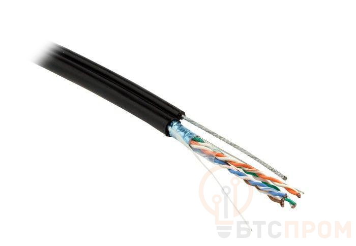 Кабель витая пара F/UTP кат.5E 4 пары 24 AWG ОЖ solid экран-фольга с метал. трос. внешн. PE FUTP4-C5E-S24-SW-OUT-PE-BK-500 черн. (уп.500м) Hyperline 236291