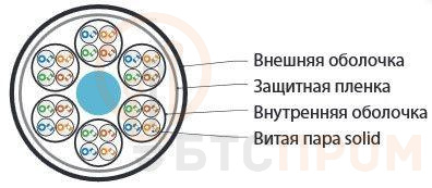 Кабель витая пара U/UTP кат.5 24 пары (4 пары 24 AWGх6) ОЖ solid каждый 4х парник - LSZH LSZH нг(C)-HF -20град.C-+60град.C UUTP24W-C5-S24-IN-LSZH-GY сер. Hyperline 46947