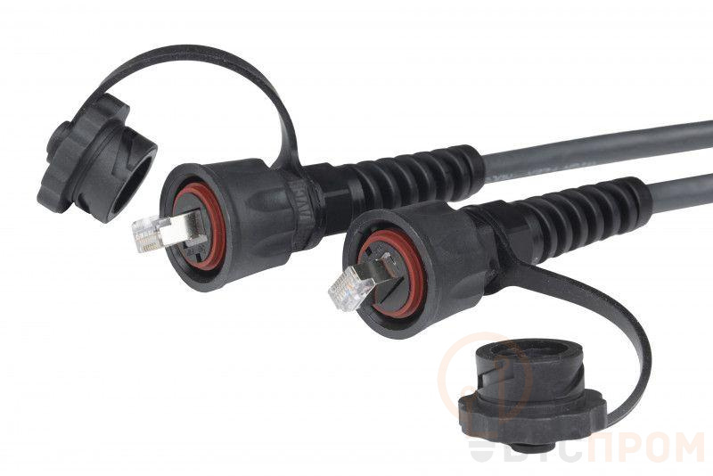 Патч-корд промышленный кат.5E F/UTP экранир. IP67 PC-IE-LPM-STP-RJ45-RJ45-C5e-1M-BK с защ. крышками 1м черн. Hyperline 45458