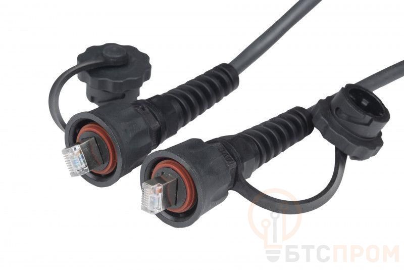 Патч-корд промышленный кат.5E F/UTP экранир. IP67 PC-IE-LPM-STP-RJ45-RJ45-C5e-2M-BK с защ. крышками 2м черн. Hyperline 45464
