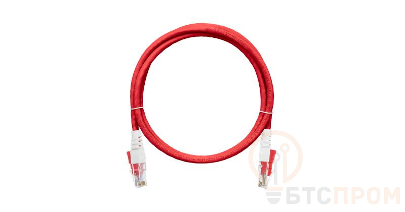 Шнур коммутационный кат.5E (класс D) U/UTP 4 пары 24 AWG (7х0.195мм) 100МГц 2хRJ45 (8P8C) T568B мж BC чистая медь LSZH нг(А)-HFLTx с замком красн. 5м NIKOMAX NMC-PC4UD55B-005-CS-RD