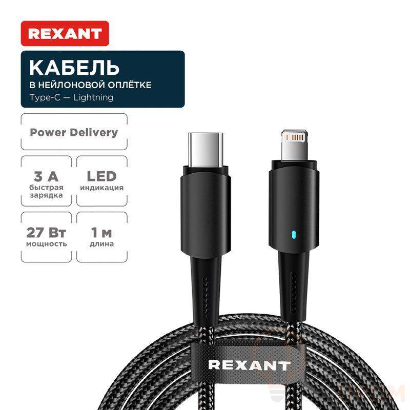 Кабель предназначен для зарядки электронных устройств, а также их синхронизации с ПК или ноутбуками. С одной стороны изделия расположен разъем USB-С, а с другой – разъем Lightning. Изделие выполнено из нейлонового плетеного провода высокой плотности, что обеспечивает защиту от перегибов и заломов. Цвет – черный. Кабель поддерживает стандарт быстрой зарядки Power Delivery и имеет выходную мощность 27 Вт с силой тока 3А. Скорость передачи данных составляет до 480 Мбит/с. На штекере кабеля предусмотрена световая индикация, которая облегчает поиск устройства в ночное время. Длина кабеля равна 1 м, что позволяет заряжать устройство и передавать данные на комфортном расстоянии для пользователя.