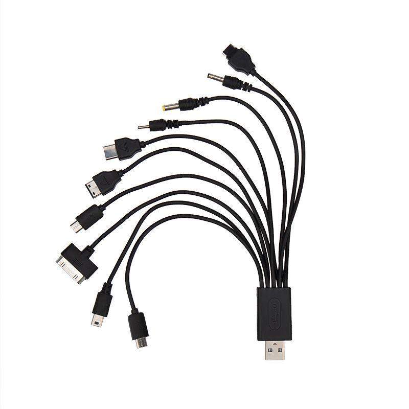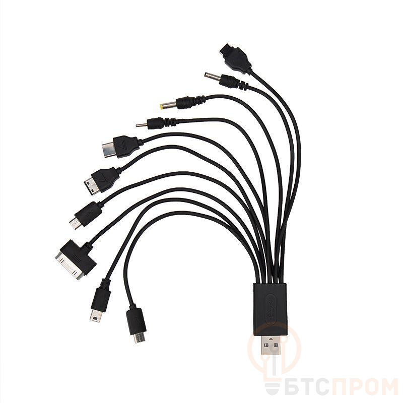 Универсальное устройство с 10 разъемами. Совместим с: miniUSB 5 Pin (устройства с miniUSB 5 Pin зарядки порт), microUSB (устройств с microUSB порт зарядки), NOKIA, Samsung, Sony Ericsson, LG,HTC, iPod, iPhone. Используется только для зарядки устройств.