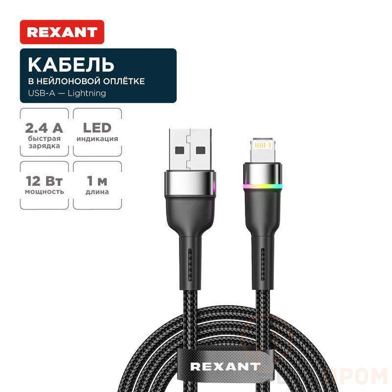 Кабель предназначен для зарядки мобильных устройств, а также их синхронизации с ПК или ноутбуком. С одной стороны изделия расположен разъем USB-А, а с другой – разъем Lightning. Изделие выполнено из нейлонового плетеного провода высокой плотности, что обеспечивает защиту от перегибов и заломов. Цвет – черный. Кабель поддерживает стандарт быстрой зарядки Quick Charge 3.0 и имеет выходную мощность 12 Вт с силой тока 2,4 А. Скорость передачи данных составляет до 480 Мбит/с. На штекере кабеля предусмотрена LED подсветка, которая облегчает поиск устройства в ночное время. Длина кабеля равна 1 м, что позволяет заряжать устройство и передавать данные на комфортном расстоянии для пользователя.