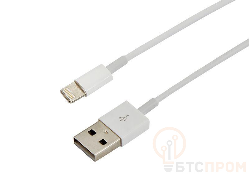 USB кабель для iPhone 5/5s/6/6+/6S/6+S/7 белый. Предназначен для зарядки и синхронизации с ПК техники Apple с помощью USB разъема. Длина 1 м.