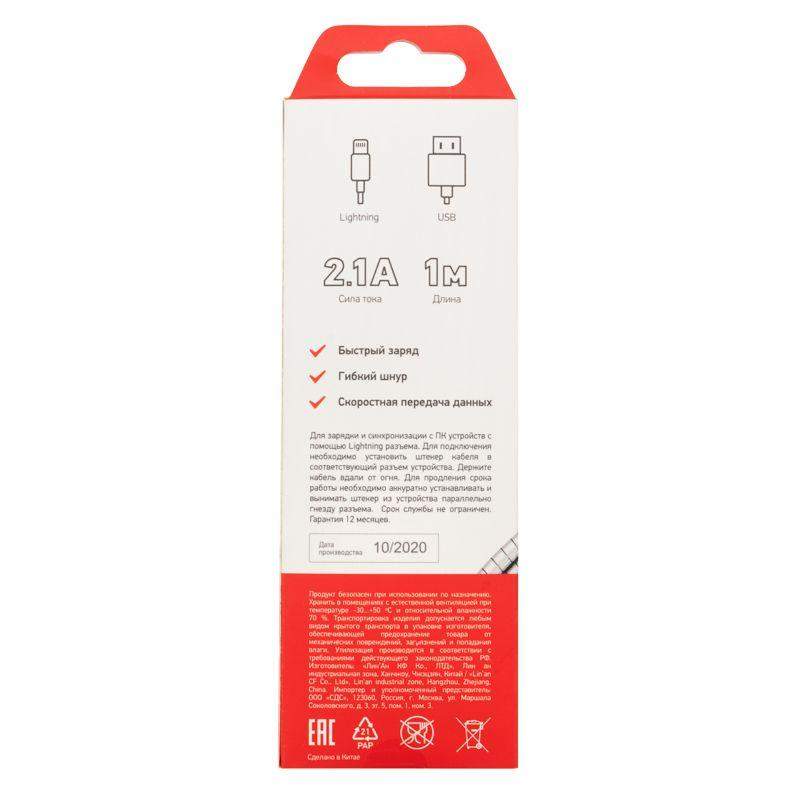 Кабель представляет собой удобный и практичный аксессуар для зарядки мобильных устройств, а также их синхронизации с ПК или ноутбуком. Кабель оснащен двумя разъемами: на одном конце располагается разъем USB-A, а на другом – разъем Lightning. Стальная износоустойчивая оплетка защищает провод от перегибов, скручивания и заломов, что обеспечивает долгий срок службы. Длина провода составляет 1м. Кабель позволяет в считанные секунды синхронизировать гаджет с ПК, передать данные на очень высокой скорости, а также быстро зарядить аккумулятор.