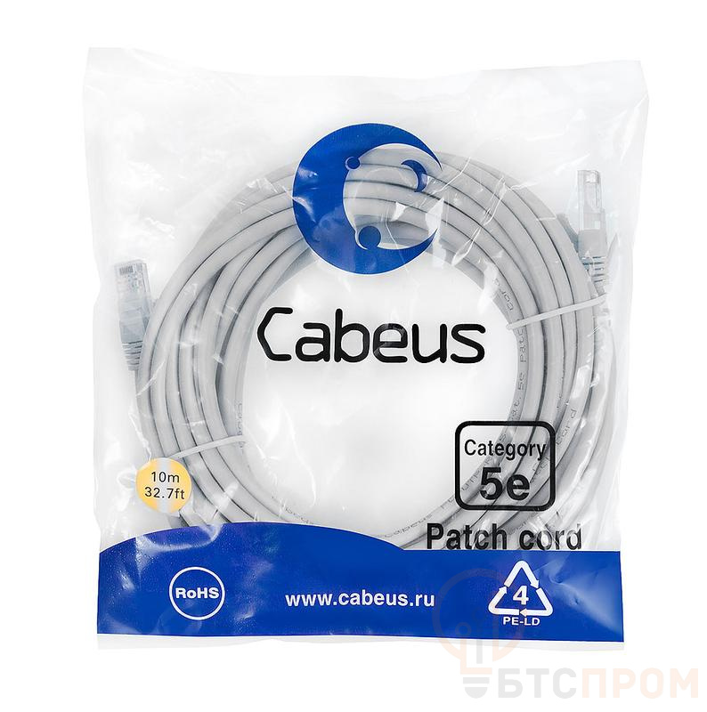 Патч-корд U/UTP кат.5E PC-UTP-RJ45-Cat.5e-10m-LSZH 2хRJ45/8p8c неэкранир. LSZH 10м сер. Cabeus 9591c