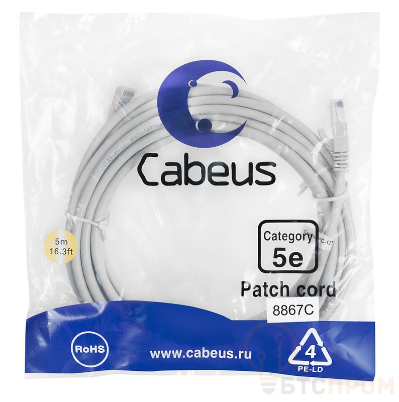 –Патч-корд U/UTP кат.5E PC-UTP-RJ45-Cat.5e-5m-LSZH 2хRJ45/8p8c неэкранир. LSZH 5м сер. Cabeus 8867c