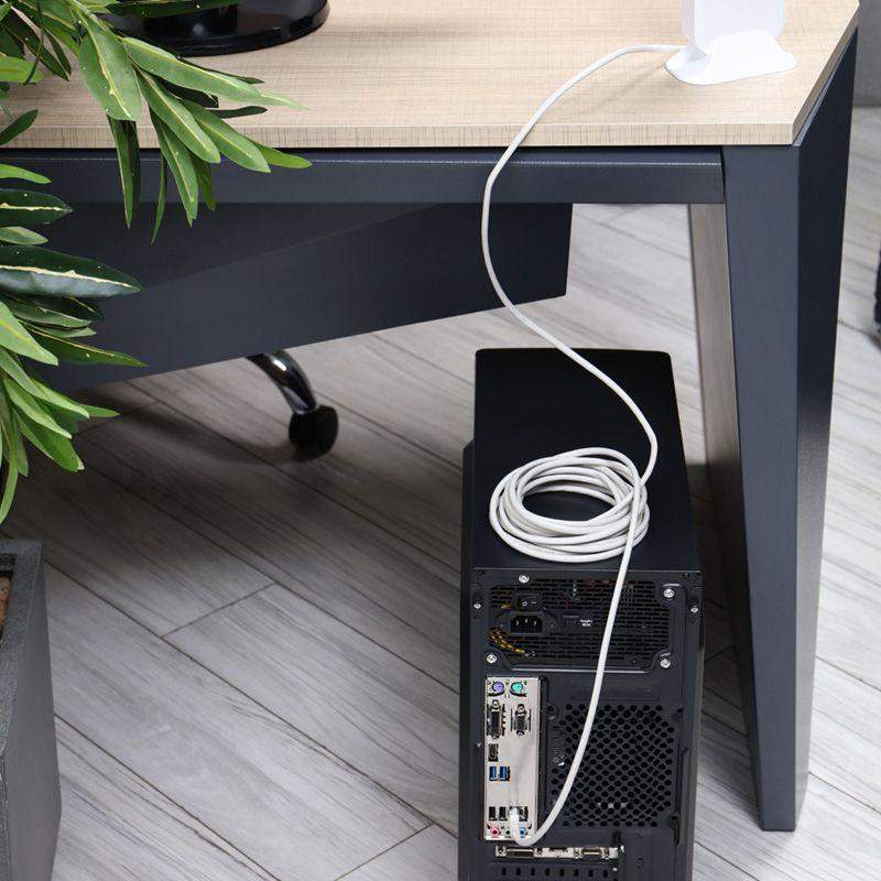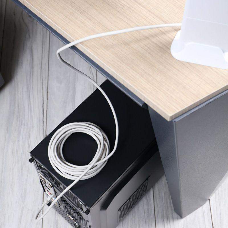 Патч-корд U/UTP серого цвета предназначен для подключения активного и пассивного сетевого оборудования в составе структурированной кабельной системы. Позволяет подключить одно электрическое устройство к другому. Представляет собой шнур из 4 пар изолированных проводников, скрученных между собой, находящихся в общей изоляции. С двух сторон располагаются коннекторы RJ45 (8P8C), посредством которых различное оборудование соединяется между собой. Разъемы изготавливаются литыми, что обеспечивает надежное крепление провода в коннекторе. Контакты разъемов имеют напыление техническим золотом, что способствует улучшению пропускной способности сигнала. Полоса пропускаемых частот от 100-125 МГц, что соответствует категории 5е. Длина неэкранированного шнура составляет 5 метров. Оболочка – безгалогенный компаунд, который не распространяет горение, не дымится и не выделяет вредных веществ.