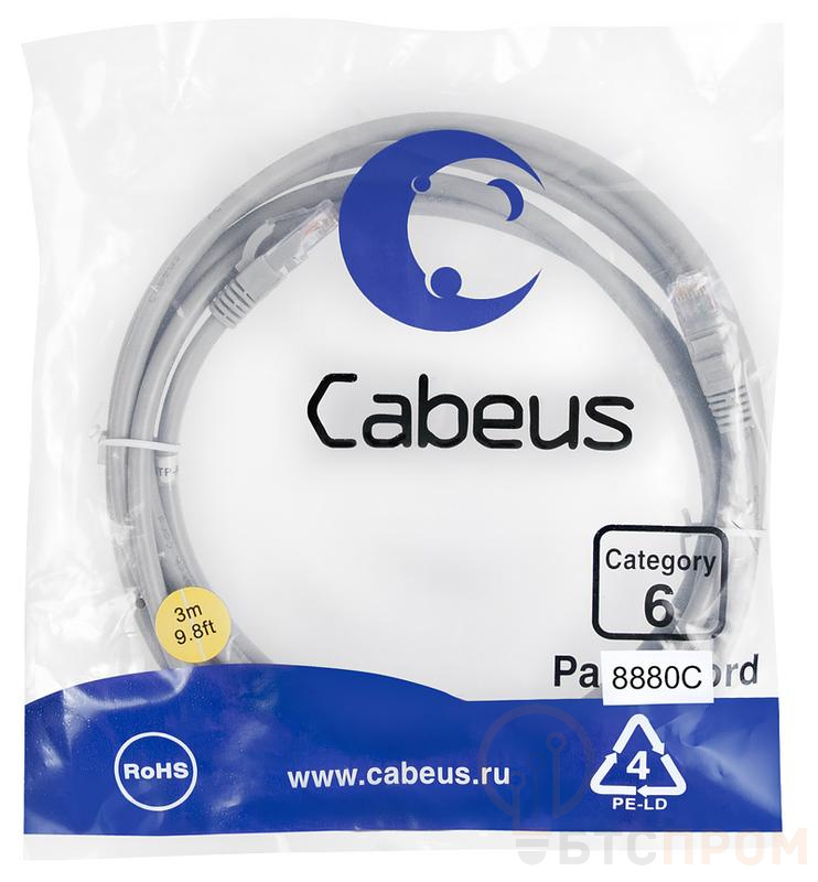 Патч-корд Cabeus 8880c — это неэкранированный коммутационный шнур категории 6, предназначенный для высокоскоростных сетевых соединений. Длина кабеля составляет 3 метра, он оканчивается с обеих сторон коннекторами RJ45 (8p8c).