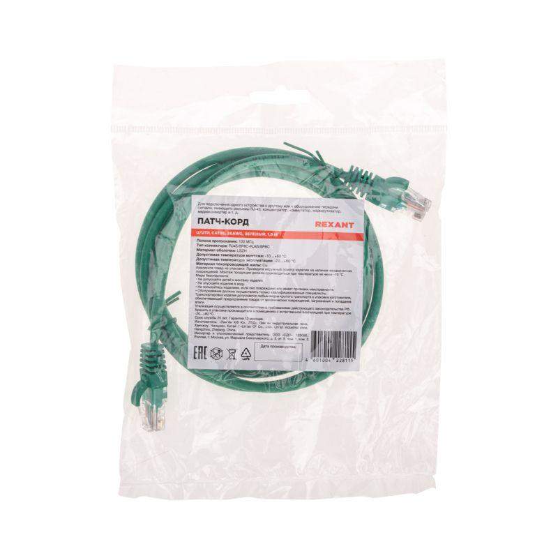 –Патч-корд U/UTP CAT 5e RJ45-RJ45 26AWG LSZH зел. 1.5м Rexant 02-0106-105