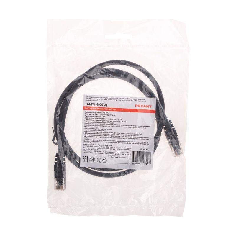Патч-корд U/UTP CAT 6 RJ45-RJ45 26AWG LSZH черн. 1м Rexant 02-0292-1