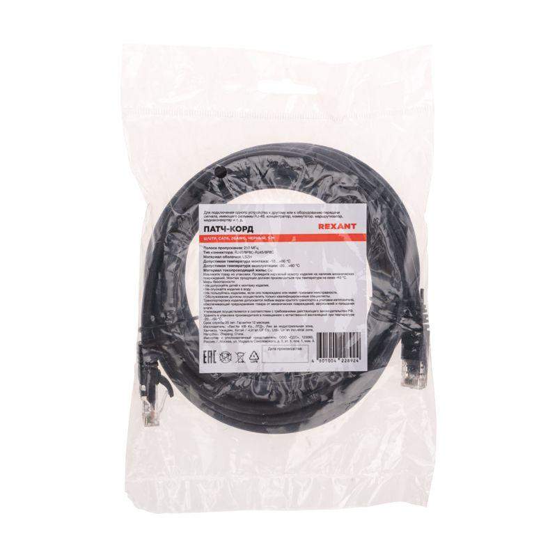 –Патч-корд U/UTP CAT 6 RJ45-RJ45 26AWG LSZH черн. 5м Rexant 02-0292-5