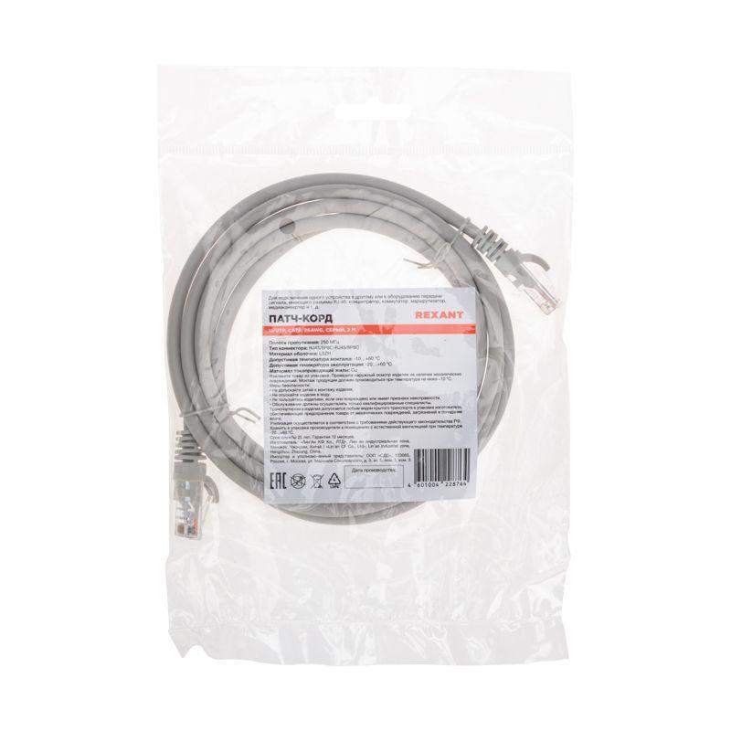 Патч-корд U/UTP CAT 6 RJ45-RJ45 26AWG LSZH сер. 2м Rexant 02-0290-2 фото в каталоге от BTSprom.by